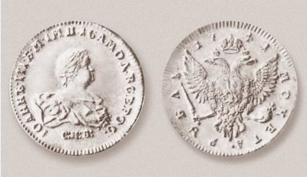 Серебряный рубль с именем «Иоанна III Антоновича, Божией милостью императора и самодержца Всероссийского»