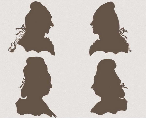 Силуэты детей Анны Леопольдовны. Верхний ряд: принц Петр, принц Алексей; нижний ряд: принцесса Елизавета, принцесса Екатерина