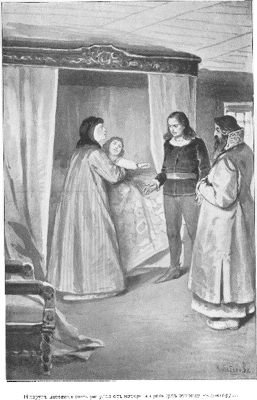 Князь Борис передал желание доктора Наталье Кирилловне, и опочивальня царевича опустела разом. Тогда доктор засучил рукава своего широкого кафтана, осмотрел и ощупал царевича, приподнял его к себе на колени, заглянул ему в горло — и покачал головой.