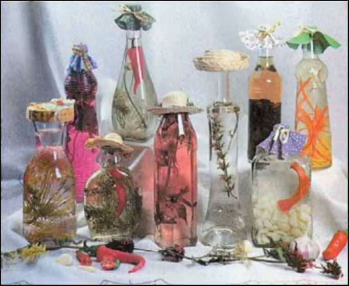 Чтобы придать готовому уксусу приятный аромат, к нему добавляют пряные травы: эстрагон, мяту, мелиссу, базилик, любисток, зверобой, майоран, тимьян. Через 15–20 дней, когда закончится экстракция (извлечение) ароматических веществ, уксус процеживают.