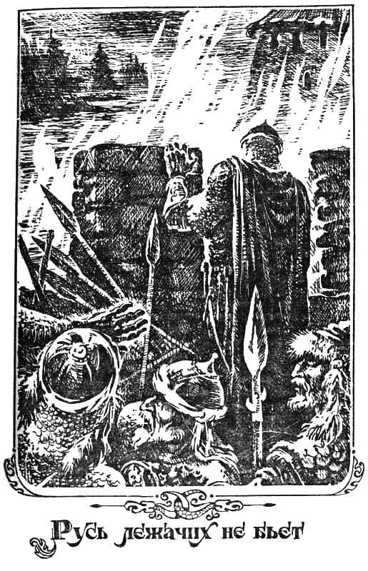 Еще не кончено ратное дело: вон за рекой на стенах крепости мигают огни, словно волчьи глаза. Поутру опять сеча. И кто знает, скольких богатырей завтра уложат мечи хазарские на березовую постель.