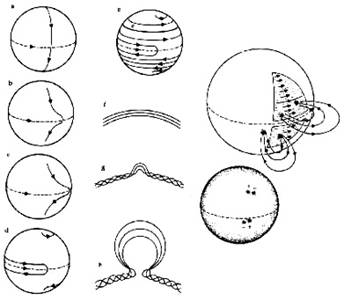 Прежде, чем продолжить, напоминаем читателю: данное Коттереллом определение солнечных пятен, разделяемое многими другими учеными, включает видение магнитных силовых линий Солнца в форме реальных переплетающихся “проволочек”. Одни “проволочки” тянутся с севера на юг, другие — с востока на запад. Тогда, поскольку экватор вращается с большей скоростью, чем полюса, вертикальные и горизонтальные магнитные силовые линии непрерывно скручиваются и переплетаются одна с другой в виде гигантской косы. Когда напряжение ставится слишком сильным, происходит внезапный щелчок, высвобождающий сдерживаемую энергию. Такое спонтанное высвобождение энергии наблюдается как солнечное пятно, которое обычно обнаруживается в двух близлежащих местах одновременно. Два пятна соответствуют двум концам внезапно возникающей дуги, создающейся, когда магнитная сплетенная коса энергии “выщелкивается” из Солнца. Отсюда, почти каждые 11 лет сплетенные магнитные поля Солнца достигают максимального напряжения, создавая на его поверхности огромное число видимых солнечных пятен.
