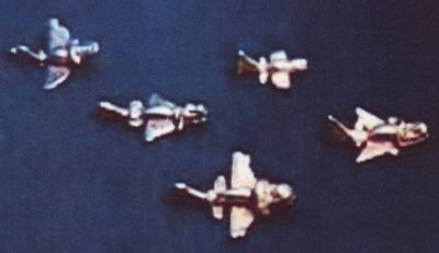 Наряду с другими положениями, Хоагленд и другие обсуждают недавние находки немецких ученых д-ра Олгунда Энбума и м-ра Питера Белтинга. Из гробниц инков были извлечены несколько маленьких золотых безделушек, датируемых тысячами лет. Эти безделушки четко изображают структуры, явно напоминающие реальные летательные аппараты с чем-то, похожим на орудийные башни, на чем-то, похожем на крылья. Судите сами.