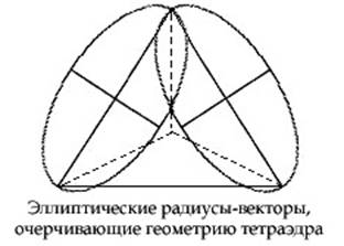 [Изучая нижеприведенную схему, следует помнить, что мы смотрим на расплющенное изображение в двух измерениях. Следовательно, это не совсем то настоящее трехмерное изображение, как оно выглядело бы на самом деле. Однако оно покажет, как на совершенно “спрямленном” трехмерном графике выглядела бы одна грань тетраэдра.]