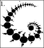 И вновь мы возвращаемся к изображению B&W Стоунхендж 1996 (являющемуся восхитительным в форме фи фракталом круга на полях Серия Юлии), к изображению решетки Бэкера-Хэгенс, а затем к перевернутому, увеличенному и обратному вырезыванию образования Стоунхендж с уместными кругами, выделенными белым: