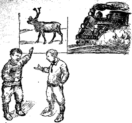 — Нет! Олень лучше паровоза. Паровоз идет лишь туда, где рельсы железные есть. На олене куда захочешь, туда и поедешь. Везде ему дорога открыта.