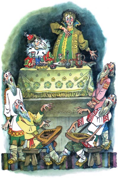 — За лесами, за горами,Ходит баба с пирогами! —Распевали гусляры,Теша царские пиры.На душе веселье, грусть ли,Гусляры достанут гусли:Дым — столбом, и пир — горой.Но теперь другой настрой:Стали песню петь напевнуПро Марьяну-королевну,Небывалую красу,Золочёную косу…Царский сын, услышав это,Ждать не стал конца куплета:— Где живёт краса-девица? —Закричал наш молодец. —Я хочу на ней жениться!— Погоди, — вздохнул отец.— До Марьяны — путь неблизкий:За три моря, в край Индийский.И поедет ли на Русь? —А царевич: — Разберусь! —