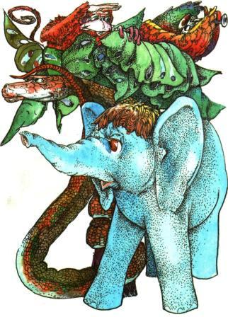 — Хм! — сказала бабушка. — Когда я говорила о воспитании, я не совсем это имела в виду. Но в общем ты, мартышка, права. Если никому ничего ни для кого не жалко — это действительно красота. — И бабушка ещё раз сказала: — Хм! — Это «Хм!» она сказала не мартышке, и не слонёнку, и не попугаю, и даже не своему внуку удаву. Это «Хм!» она сказала сама себе.