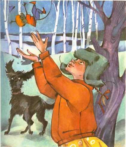 — Падай, падай! — крикнул ему Черныш и так грозно залаял на Сороку, что та мигом отлетела в сторону.