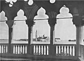 Изящная колокольня церкви Сан-Джорджо Маджоре относится к XVIII веку, когда она была восстановлена и обновлена после обвала. Ее венчают вращающиеся фигуры ангелов. С высоты открывается прекрасный вид на остров и лагуну. Отсюда можно увидеть утопающий в зелени театр.