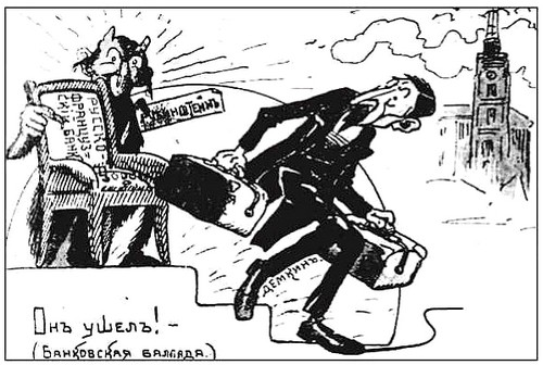 Финансовые аферы Рубинштейна с городской думой. Карикатура из Петроградской газеты от 26 сентября 1916 года.