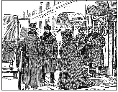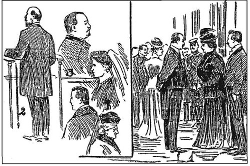 Дело Ольги Штейн в окружном суде. Отъезд подсудимой из зала перед бегством («Петербургский листок», 1907, № 335,6 декабря).