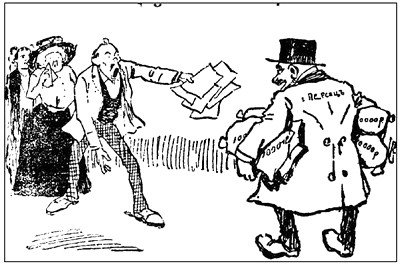 Персиц продавал «тайну обогащения». Карикатура из «Петербургского листка» от 3 декабря 1909 г.