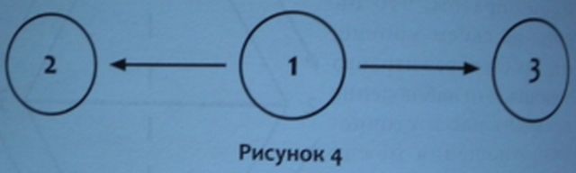 Мы только что видели, что два крайних термина кватернера, которые в то же время есть первый термин первой троичности и последний термин второй, по своей природе суть нечто вроде посредников между двумя другими, хотя и на противоположных основаниях: в обоих случаях они связывают и согласовывают в себе элементы дополнительности, но один в качестве принципа, а другой — в качестве равнодействующей. Чтобы сделать этот посреднический характер наглядным, можно изобразить термины каждой троичности в линейном расположении [32] : в первом случае первый термин тогда располагается посредине линии, соединяющей два других, которым он одновременно дает рождение центробежным движением, направленным в обе стороны и конституирующим то, что можно назвать поляризацией (рис. 4);
