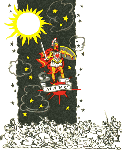 Таких путешествующих огоньков на небе несколько. Их назвали планетами. Эту планету, красноватую, люди заметили давно. Своим цветом она напоминала огонёк костра. Или далёкое пламя пожара. Города и сёла горели обычно в годы опустошительных вражеских нашествий. Поэтому суеверным людям в красной планете чудилось зловещее предзнаменование грядущих бедствий. Они боялись её. И назвали Марсом. По имени бога войны.