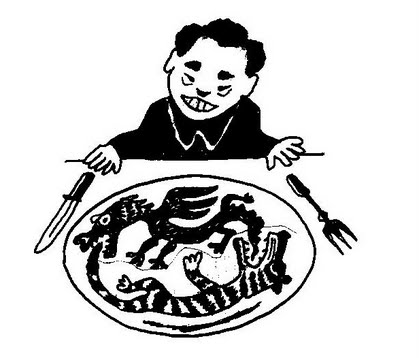 Один ресторан в городе Хонгчжу славится блюдом, которое называется «Битва тигра с драконом”. Оно приготовлено из кошки и змеи. Этого романтического блюда я не пробовал. Зато я ел там другое блюдо: цыплёнка, завёрнутого в лист лотоса и испечённого в земле. Делают его монахи, и на приготовление этого кушанья уходит двадцать четыре часа. Лист лотоса придаёт цыплёнку необыкновенный аромат, который усиливается то ли атмосферой восточной экзотики, то ли вашим разнузданным воображением.