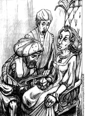 Поэтому я, по совету Астольфо, заткнулся и не промолвил ни слова, пока мы не отворили массивные двери, замыкавшие коридор. Двери с шумом захлопнулись за нами. Похоже, эти створки предназначались еще и для того, чтобы не пропускать теней, ибо мы оказались в помещении, ярко освещенном стенными факелами и рядами горящих свечей, озарявших мягким светом каждый предмет. Оказалось, что здесь полно народу: напыщенные придворные, дамы в дорогих нарядах со своими камеристками и молодыми дочерьми, угодливо улыбающиеся юнцы в шелковых коротких панталонах и со смешными шпажонками в ножнах. Хотя до нашего появления здесь жужжала обычная светская беседа, стоило нам войти, как все замолчали и уставились на меня и Астольфо с неприкрытым любопытством. Ощущение создавалось такое, что я попал ко двору властителя одного из бесчисленных карликовых государств, хотя наша хозяйка была не более чем трижды овдовевшей графиней. По крайней мере, так объяснил мне Астольфо.