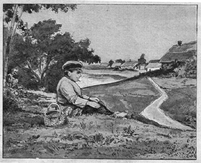 Мальчик набрал прутиков, сплел аккуратно корзиночку, выложил ее внутри листьями и стал собирать крупную землянику. Живо набрал он свою корзинку, вернулся домой и прошел на огород; там мать его полола гряды.