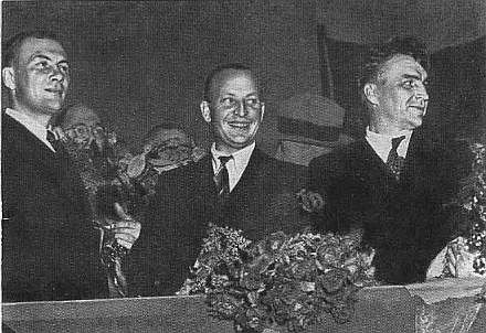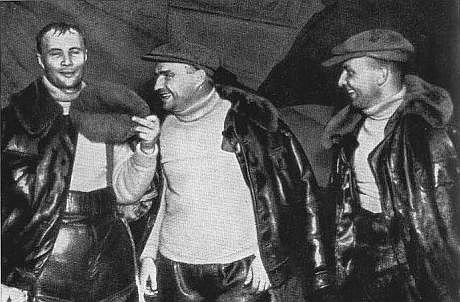 Вечером была встреча с советской колонией в Ныо-Йорке. Она состоялась в клубе «Амторга». Чкалов рассказал о том, как зародилась у Леваневского мечта о беспосадочном полете; о Громове, испытавшем сверхдальний самолет и установившем на нем рекорд дальности по замкнутому маршруту; о гибели американского летчика Поста в 1935 году и возвращении экипажа Леваневского в то же самое время с маршрута Москва — Северный полюс; о нашем перелете из Москвы на Камчатку через Ледовитый океан.