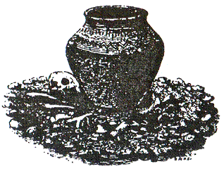 В слое С человеческие останки были расположены очень интересным способом. Кости по большей части были разложены небольшими кучками, в которых обычно находилась урна и которые были окружены кольцами, выложенными из гладкой гальки (рис. 27); более тридцати таких групп было обнаружено в одной лишь восточной части камеры. У Люкиса больше не оставалось никаких сомнений в том, что он нашел не остатки жертвоприношений, а большое захоронение, и я не вижу, каким образом можно оспорить это утверждение, так как в данном случае, и это нужно подчеркнуть, само сооружение не могло служить столообразным жертвенником (хотя оно, конечно же, и получило название «алтарь друидов»), а представляет собой очень большую подземную камеру, построенную, по всей видимости, для хранения останков, а не для проведения обрядов.