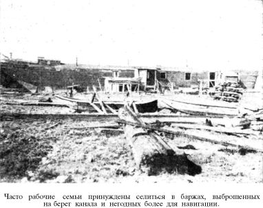 Часто рабочие семьи принуждены селиться в баржах, выброшенных на берег канала и негодных более для навигации.