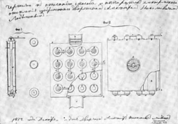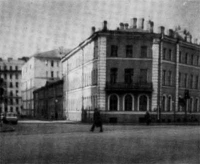 Лаборатория А. Н. Лодыгина помещалась в этом «доме Телешова» — па углу Конногвардейского (ныне Суворовского) проспекта и Одесской улицы, впервые освещенной электричеством.
