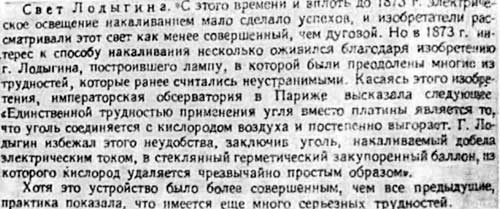 Перевод статьи «Свет Лодыгина» из газеты «Нью-Йорк геральд» 21 декабря 1879 г.