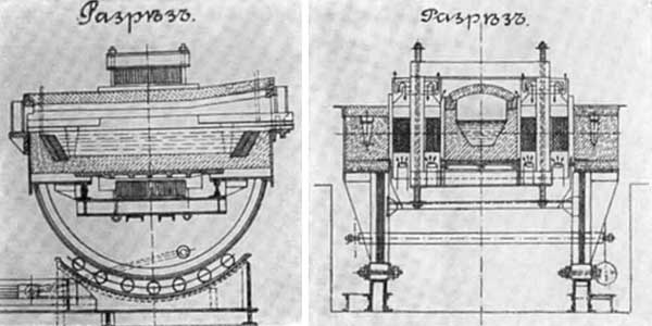 Разрезы электропечей конструкции А. Н. Лодыгина.
