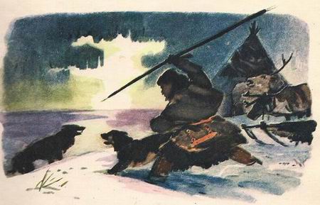 Вдруг Северин схватил хорей, прислонённый к чуму Тункая, и кинулся вперёд. И Норка с лаем — за ним.