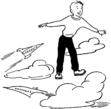 — М-да… А знаете ли, вам сейчас не придется получить «антигравитоны». Нельзя! В дневнике написано: «Дисциплина слабая»! А мы их выдаем только дисциплинированным ребятам, которые не будут на партах по воздуху летать или там за самолеты цепляться. Да-с… Придется вас огорчить… Так что до свидания!