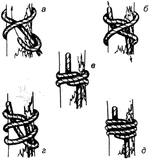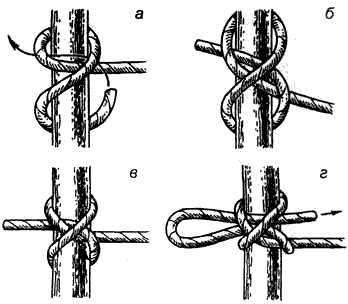 — используется для привязывания веревки к дереву, столбу и т.п.;
