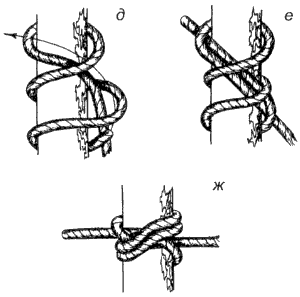 Узел «удава» (а-г ), двойной узел «удава» (д-ж )