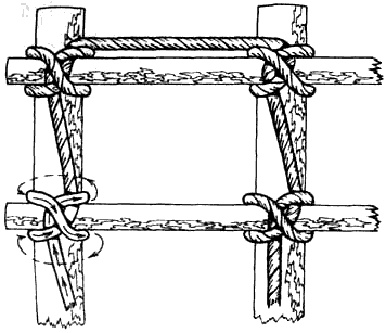 — незаменимы для связывания различных деревянных каркасов, в т.ч. каркасов плотов под углом в 90°. Жесткость достигается за счет способности узлов затягиваться «намертво»;