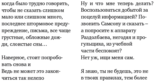 Письма не приходят, ты неизвестно где, а я-то тем более. Может, ты прав и лучше нам не встречаться? Говорят, из «хуже» иногда получается «лучше». Если честно, то мне — «хуже». Подождем, не будем ничего менять?