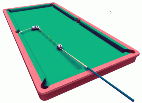 Выполняя прямой удар, следует обращать особое внимание на силу и вид удара кием. При этом надо учитывать ряд обстоятельств.