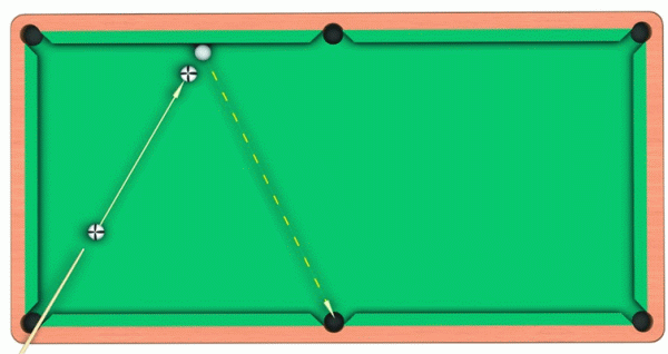 Самым сложным видом прямого удара является удар от борта в угол. Удар кием в биток в этом случае целесообразнее всего выполнять накатом.