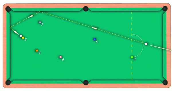 7) За желтый шар, сыгранный в среднюю лузу или дуплетом (либо с отражением от нескольких бортов стола) в угловую, – 12 очков.