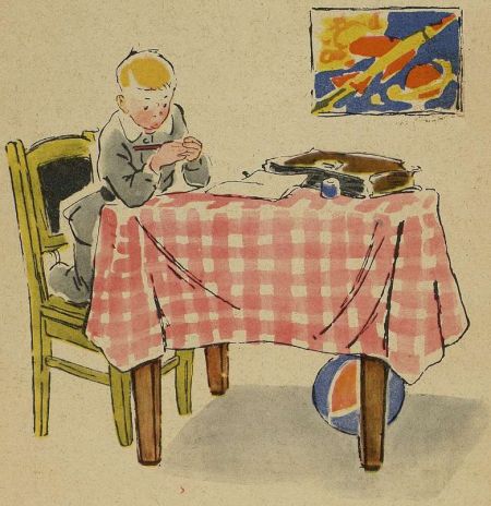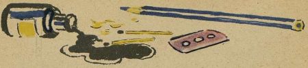 Коля унёс чернильницу на кухню и очень долго там возился. А потом пришёл весь забрызганный водой и чернилами.