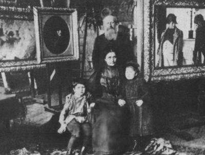 Л. В. и В. В. Верещагины с сыном Василием и дочерью Анной. Фото 1890-х гг.