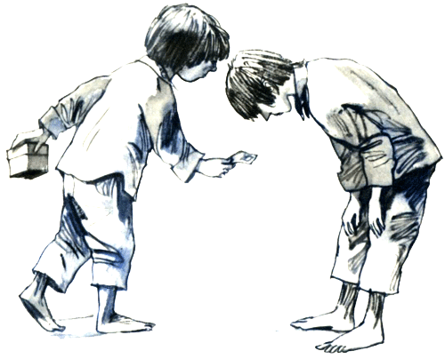 А затем происходит нечто невероятное: Самюэль Элиас во дворе наступает на бумажку, а это оказываются деньги, целых пять крон! До чего же он все-таки везучий! О таком везении невозможно не рассказать Магнусу после того, как они легли и Магнус повключал и повыключал свою лампу и в комнате воцарилось безмолвие. Тут-то Самюэль Элиас, улыбаясь в темноте, и рассказывает про свою находку. Некоторое время Магнус лежит молча, не говорит ни слова. Странно! Обычно Магнус так интересуется деньгами, даже иногда предлагает копить их. А тут словно воды в рот набрал, можно даже подумать, что уснул. Но нет, он вовсе не уснул, потому что вдруг произносит: