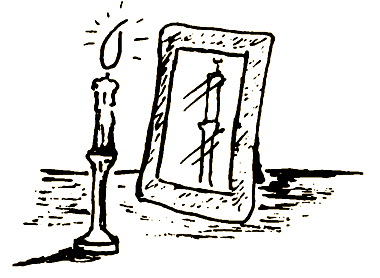 Подойдя к печной трубе и открыв её, я сказала: «Александр Сергеевич Пушкин, покажи в колечке моего суженого!» Села за стол напротив зеркала и стала смотреть в стакан, на донышке которого поблёскивало серебряное колечко. Подруга стояла за моей спиной и тоже могла всё видеть.
