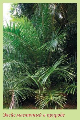 Листья перистые, 3–4 м длиной; листочки многочисленные, по 60–100 пар и более, 0,6–1 м длиной и 3,5–5 см шириной, линейно-ланцетные, кожистые, с выдающейся средней жилкой, зеленые. Черешок 1–2 м длиной, расширенный у основания, 12–20 см шириной, пильчато-зубчатый, в волокнах, темно-зеленый. Соцветие пазушное, до 30 см длиной и 20–25 см шириной, разветвленное. Одно соцветие дает 600 плодов и более. Элейс масличный – Elaeis oleifera. Встречается в тропических влажных лесах в Центральной Америке и на северо-западе Южной Америки.