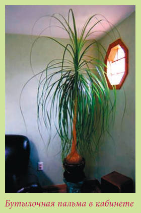 Цветущие растения в офисе смотрятся особенно красиво, но и требуют, как правило, тщательного ухода. Поэтому офисная классика – это пальмы, ложные пальмы, фикусы, бугенвиллеи, шефлеры и т. д. Очень красив фикус эластика сорт Тиненке с пестрыми листьями. Пальмы в офисе – хороший способ борьбы за здоровый образ жизни. Они не переносят табачный дым, поэтому сотрудникам придется бросать курить на рабочем месте, особенно чувствительны к этому хризалидокарпус желтоватый, ховея Форстера.