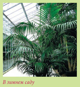 Комнатным пальмам требуются такие же условия, как и молодым растениям в их природных условиях произрастания. Так, например, кокосовая пальма, которую можно купить в цветочном магазине, является лишь ростком, который у себя на родине растет в затененных местах и со временем превращается во взрослое растение, уже не столь требовательное к наличию тени и растущее под яркими лучами. Пальмы влажных тропических лесов, которые даже у себя на родине не достигают очень больших размеров, также предпочитают тенистые места (например, хамедорея – Chamaedorea elegans ). Итак, необходимо знать, что комнатные пальмы следует защищать от прямых солнечных лучей. Летом их, конечно же, можно и нужно вынести на открытый воздух, но не на открытое солнце. В первые дни, пока они будут привыкать к новым условиям, лучше разместить их в тени. А потом поставить так, чтобы солнечные лучи не обжигали листья. При уходе за саговыми пальмами следят, чтобы растениям хватало света, но их тоже берегут от прямых солнечных лучей. Можно выставить пальму в сад, расположив в полутени, например на веранде.