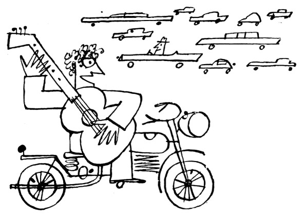 Он одевается просто и на эстраде. Хотя он популярен и его пластинки расходятся миллионными тиражами, он не коллекционирует «кадиллаки», как это делал Элвис Пресли. Самая дорогая вещь у Боба — это мотоцикл, на котором он скитается по всей стране в поисках новых впечатлений. Почти все свое время он проводит в путешествиях. Изредка он заезжает к своему агенту в Бэрсвиль — местечко в 160 километрах от Нью-Йорка. Там он пишет песни, стихи, пьесы и романы. И оттуда заезжает в Нью-Йорк напеть очередную пластинку.