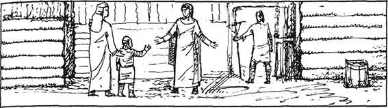 Сын Гудрун Торд стоял на дворе, когда гости подъехали к дому. Слуги помогли им сойти с коней, и Торд попросил Гудрид и ее людей подождать немного в доме. Гудрун сейчас в своей церкви, но за ней уже послали.