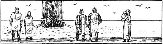 Они пошли к дому, и Гудрид казалось, что Карлсефни отсутствовал не два месяца, а всего лишь пару дней. Но ей хотелось так много рассказать ему и узнать, что было с ним в путешествии… Она приготовилась ждать до ужина, когда Карлсефни наконец расскажет о поездке всем собравшимся.