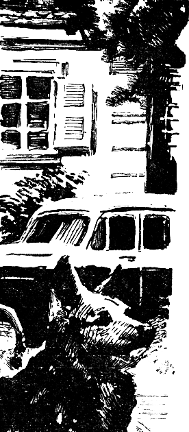 На громкий Яцубин голос прибежал серый породистый пес: высунул голову над забором, лапы положил на ограду — совсем как человек!