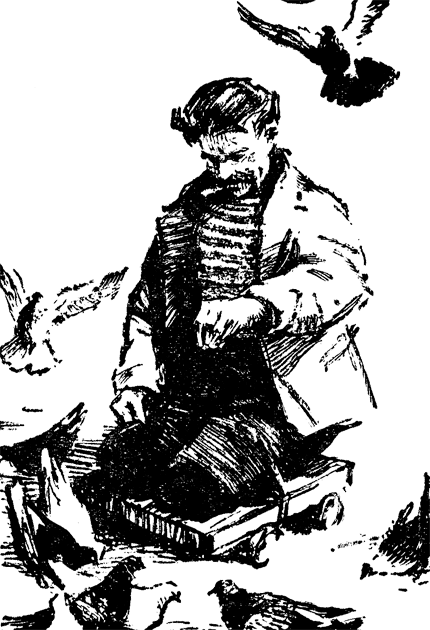 Каждое утро на этом «пятачке» можно видеть героя-севастопольца, бывшего бойца морской пехоты Мартына Мамайчука, сосредоточенно кормящего крошками разленившихся совхозных голубей. Герой-севастополец и сейчас здесь, скрежещет перед толпой на металлических своих колесиках, под которыми даже вдавливается асфальт, нагретый дневным зноем.