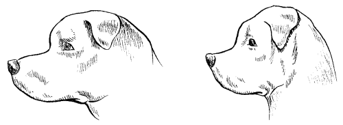 Голова и корпус собаки должны быть пропорциональны друг другу. В норме пропорции головы соответствуют половой принадлежности животного, то есть по-разному выражены у сук и кобелей.